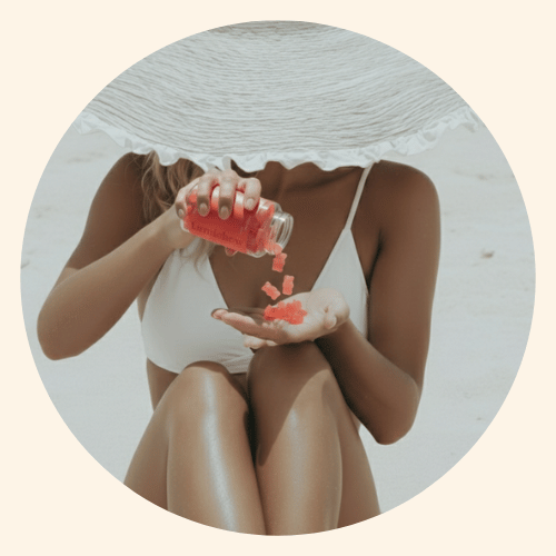 "This gave me such a beautiful deep golden tint after just a couple of weeks! I’m usually quite pale because i work indoors, but now I look like I’ve had a mini holiday in Bali — without any fake tan or sun. The watermelon gummies are delicious."